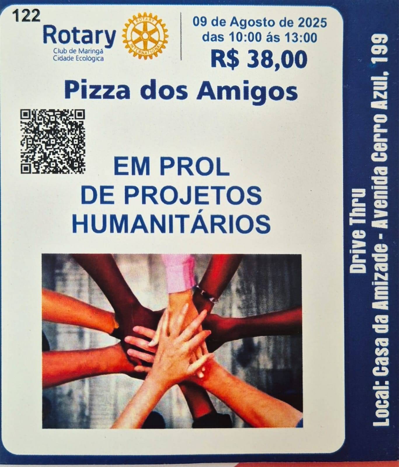 O Rotary Club Maringá-Cidade Ecológica convida você e sua família para participar da nossa Ação Social de Venda de Pizzas! Uma deliciosa forma de fazer o bem e contribuir com os projetos humanitários que realizamos em nossa comunidade! 💙🍕